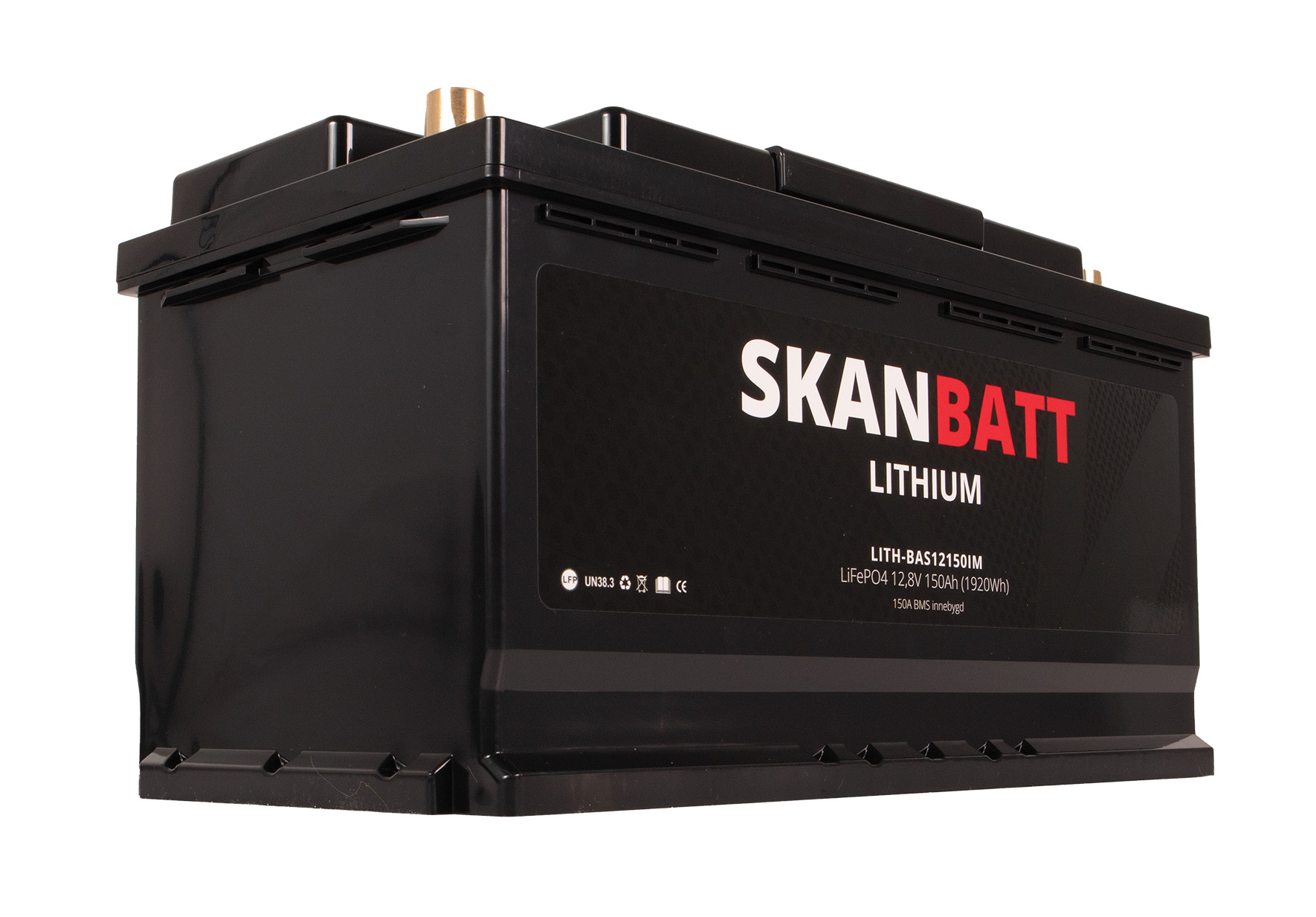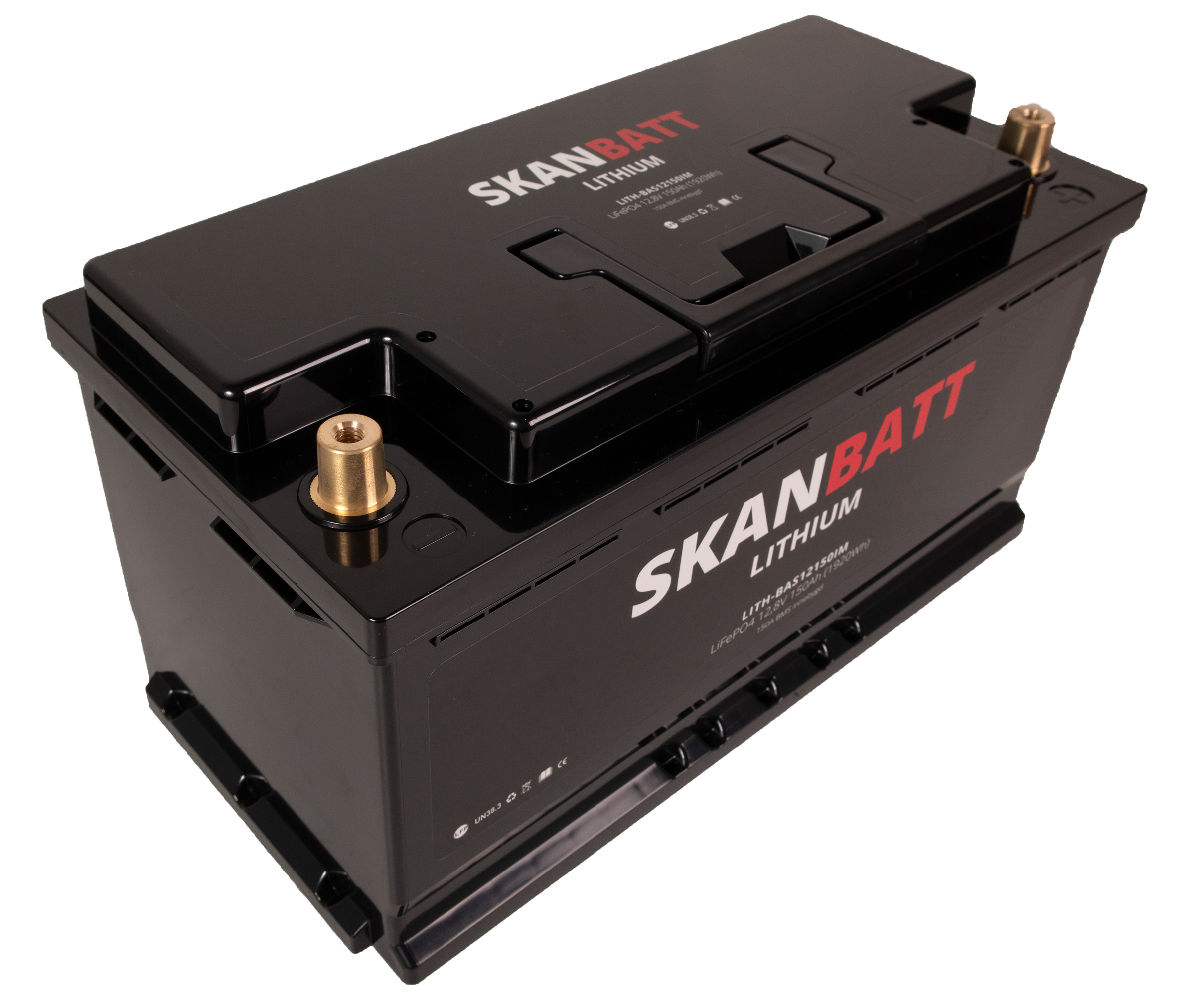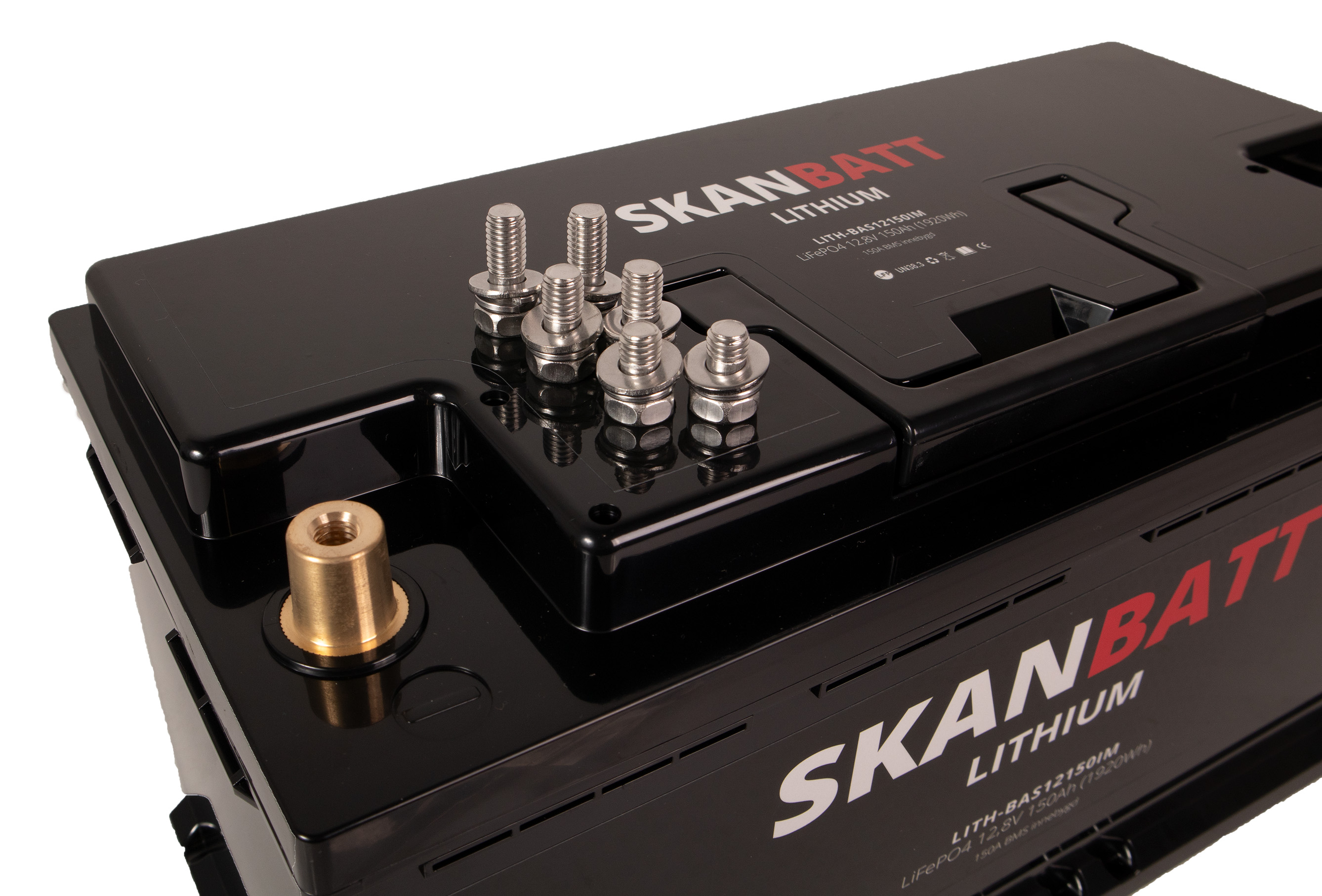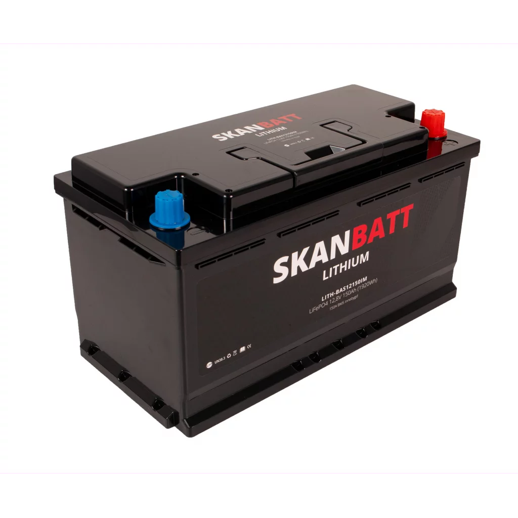 SKANBATT Lithium Batteri 12V 150AH 150A BMS (352x174x190mm) NYHET! 12V 150Ah i enda mindre batterikasse, erstatter vår tradisjonelle LITH-BAS12150