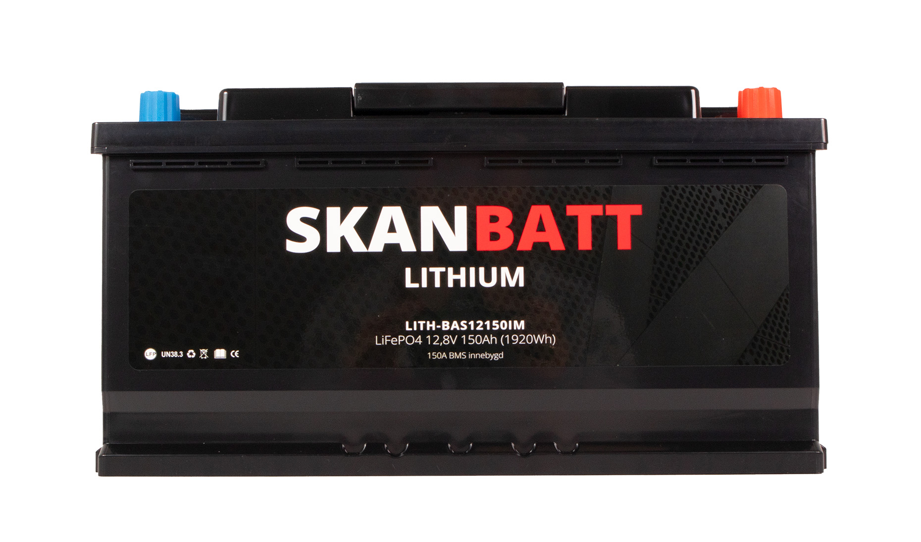 SKANBATT Lithium Batteri 12V 150AH 150A BMS (352x174x190mm)