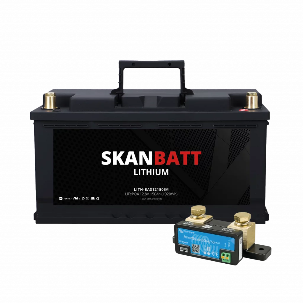 SKANBATT Lithium Batteri 12V 150AH 150A BMS (352x174x190mm) - BLUETOOTH med SmartShunt 300A fra Victron