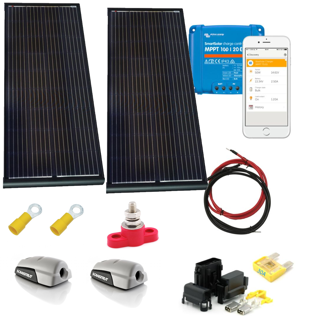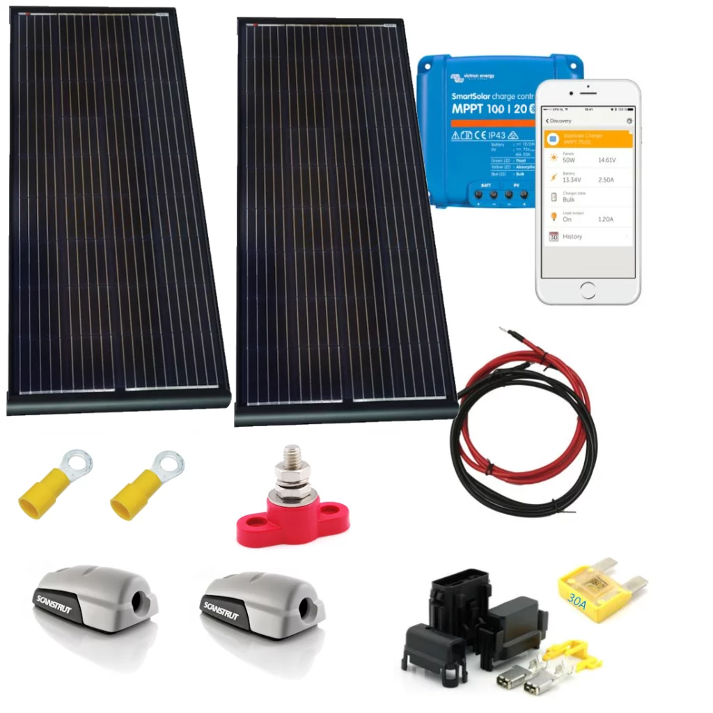 - SKANBATT 158x51 - 300W (2x150W) Black Aero komplett kit med Victron BT MPPT - SLIM